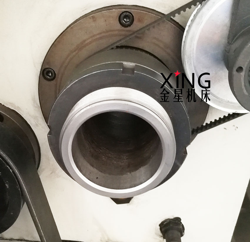 本机床主轴具有高、低速两档机械变速、机械与变频(自动变速)相结合的特点。低速档时输出力矩大,克服了变频调速车床低速力矩小的弱点,能够进行较大切削深度的加工。能够快速走刀切削,提高工作效率,适用于连续生产。