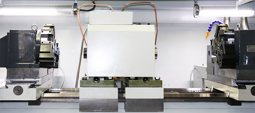 系统配置为双通道,进给轴四轴四联动,左右通道同时加工,X、Z轴均为硬轨(适合较大重量工件加工)。