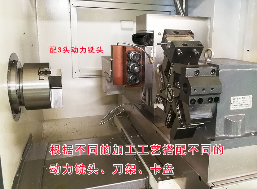 主轴采用交流伺服电机驱动,可实现无级变速以及恒线速切削和高速切削;标准型配备液压动力卡盘,也可按用户的要求安装套筒夹头和气动动力卡盘,装夹工件方便、工作可靠。